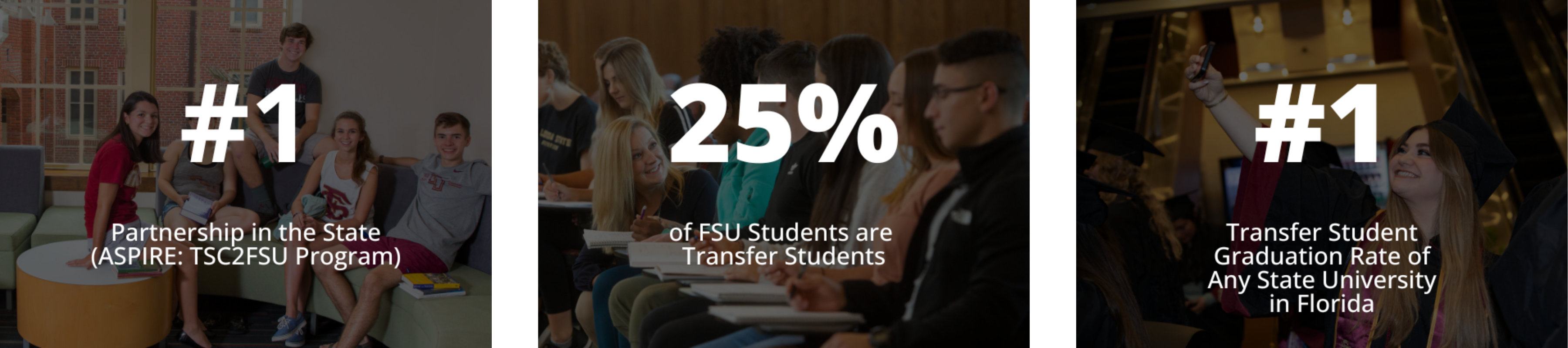 Whether you're transferring from another institution or returning to academia, we're here to support you every step of the way. Our team provides personalized guidance, academic advising, and tailored resources to ensure your success at FSU. From credit transfer assistance to integration into campus life, we're committed to helping you thrive academically, socially, and personally. Join us and discover the endless opportunities awaiting you as a transfer student at Florida State University. Go Noles!